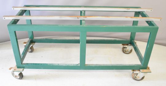 Wheeled display or storage trolley for live steam locomotives, adjustable to suit both 7¼ and 5 inch gauge, length of detachable rails 137cm, trolley including castors 130 x 62 x 53cm