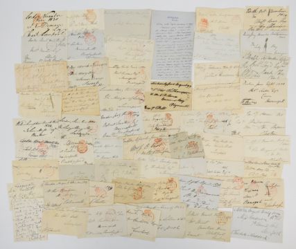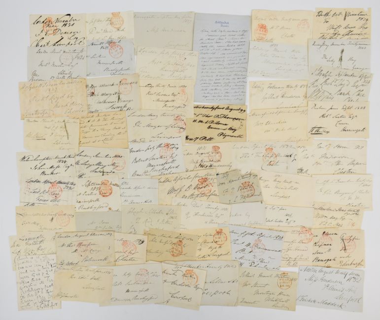 Military mail, First British Megaton Trial 1957 cover, special illustrated cover for the First Megaton Trial 1957 2½ Wilding stamp cancelled BFPO Christmas Island 24 May 1957, together with over eighty free frank fronts from 1820s and 1830s, good range of signatures including Pomfrey, Foster Pigott, Musgrove, Beauchamp, two Greene, Winchester, Egremont, Batley, St. Albans, Harrington and Balfour, also fronts, with various hand stamps 'add ½d' straight line 'Taunton received' and 'too late for delivery'