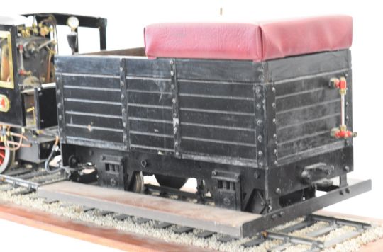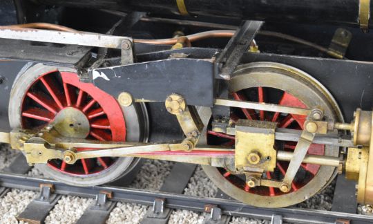 5 inch gauge Americanised Speedy 0-6-0 live steam tender locomotive, the silver soldered copper boiler having 0-150 psi pressure gauge, water level gauge glass and single safety valve, the boiler fed by an axle driven feed pump, twin injectors, Southworth or similar pump and hand pump to the riding riding truck. The twin outside cylinders having walschaerts valve gear controlled from a quadrant in the cab and also having cab operated cylinder drain cocks, the cylinders being lubricated via a ratchet lubricator under the front. The locomotive, riding truck and buffers all being sprung, overall length 159cm. With Southern Federation boiler test paperwork, the last hydraulic test having expired 25/09/2011