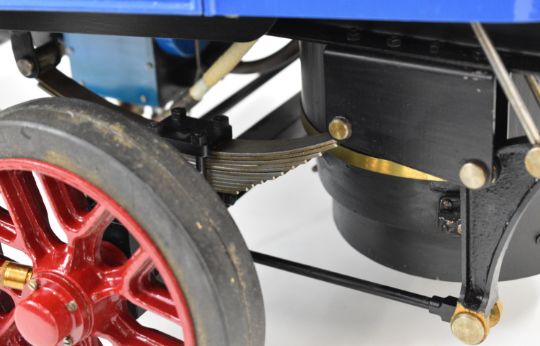 Bernard Lundberg exhibition standard 2 inch scale Clayton steam wagon, with tipper back. The coal fired silver soldered copper boiler with water level gauge glass, twin safety valves piped to an outlet beside the chimney and 0-150psi pressure gauge. The boiler is fed with an engine driven feed pump via an exhaust heater or economiser and injector beside the driver. The twin cylinder engine having reversing quadrant in the cab and handle operated regulator, driving the rear wheels via a chain to the differential, both rear wheels being braked by internally expanding brakes with gear compensation or balance mechanism near the brake pedal. The rear body has drop sides and rear and is lifted by means of twin hydraulic rams powered by a unit driven by a turbine or external handle/electric motor. The wagon riding on spoked wheels shod with solid rubber tyres, both axles having leaf springs. Overall length 101cm. Bernard Lundberg was born in 1924 and model making was very much a lifetime hobby. During WW2 he began working, first at Wimpey then at the Gramophone Co (later EMI) working on electronic projects and subsequently becoming a technical author, he continued at Elliot Brothers, G&E Bradley, Wayne Kerr and finally MEL, a defence electronics company within Phillips. He retired in 1987 but continued as a subcontractor, naming his company Beejay Enterprises (hence the signwriting). As he built the wagon he wrote a series of articles in Model Engineer magazine on various aspects of the build, including improvements he'd made and details added having had access to full size wagons. Included with the wagon is a ring binder titled The Book of the Clayton Wagon, a well written and very full account of the build, it is believed this was never published but is clearly assembled with this intention. The wagon was exhibited at Olympia in the late 1990s and I feel sure was much admired, many of the steam fittings are bespoke made and more to scale than typically seen, there is also a miniature jack and lamps for the engine
