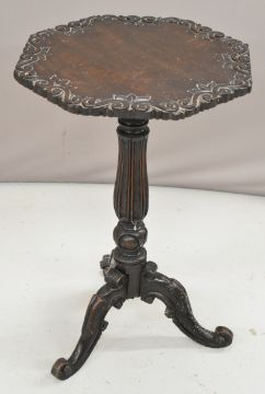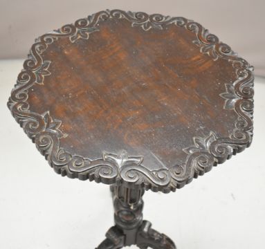 19thC spinning chair and a carved oak side table