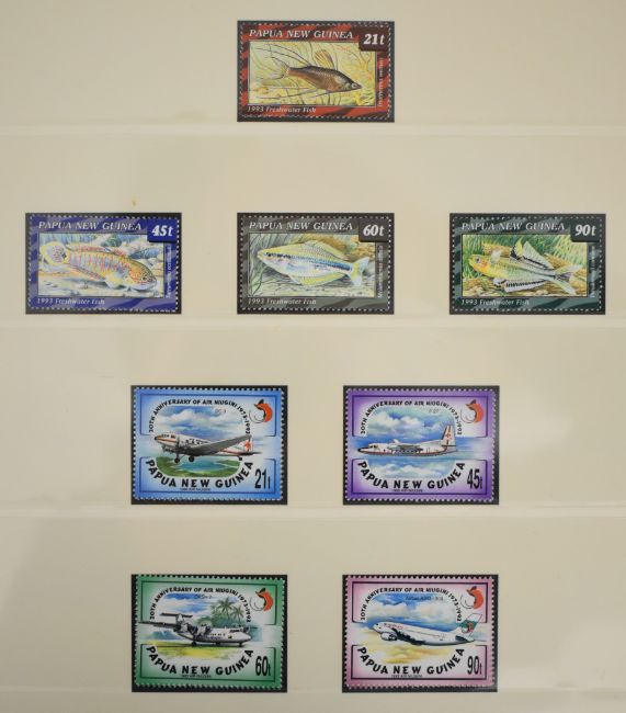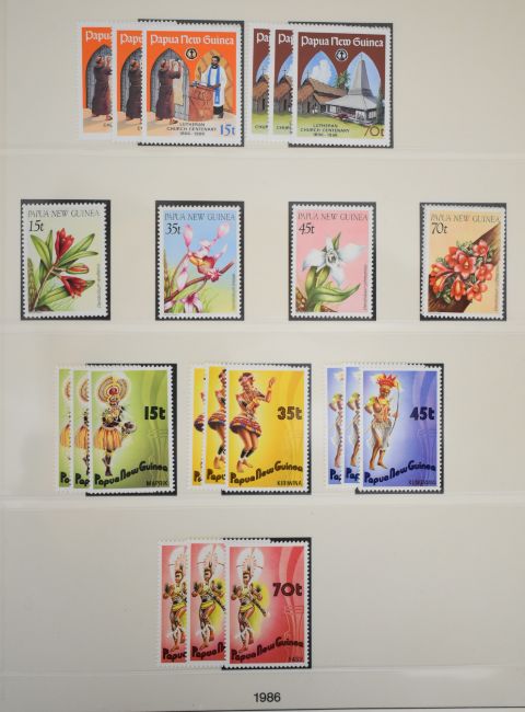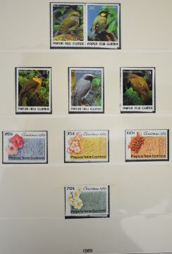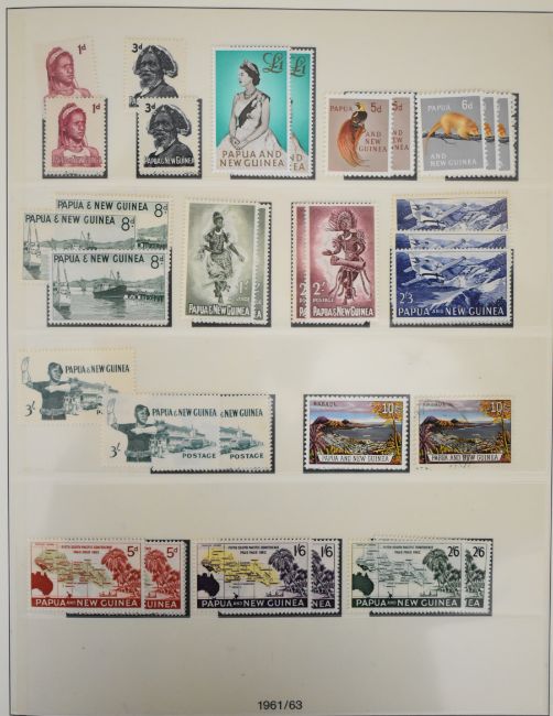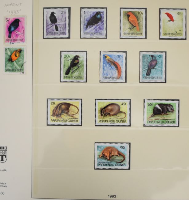 Papua New Guinea mint and used stamp collection in two Lindner pre printed albums 1937-2005, many sets, both mint and used