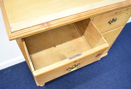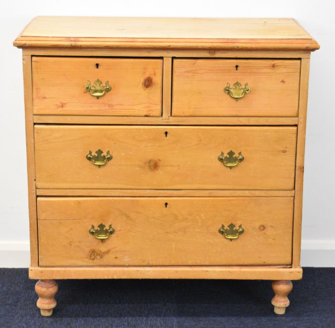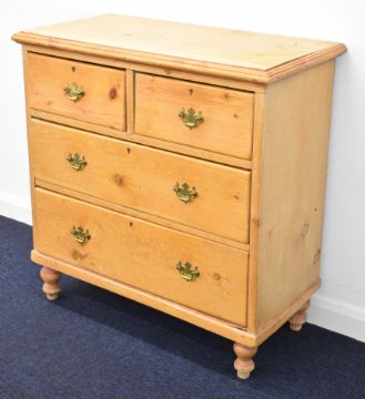Victorian pine bachelor's chest of two over two drawers raised on turned legs, W83 x D39 x H86cm