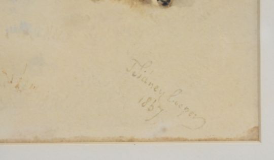 Thomas Sidney Cooper RA (1803-1902) watercolour three sheep in a winter landscape, signed and dated 1867 lower right, 13 x 20cm, in gilt frame