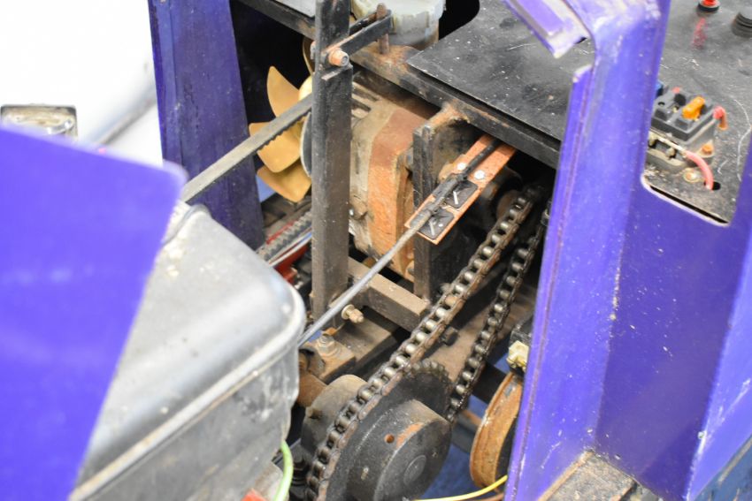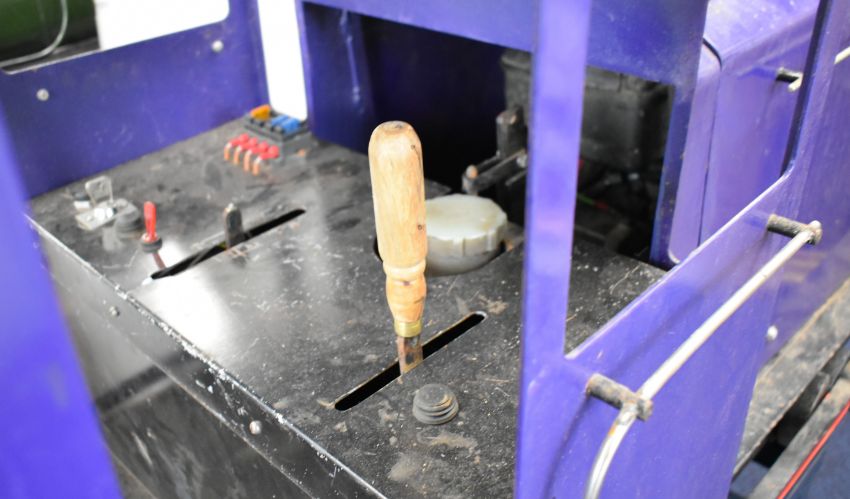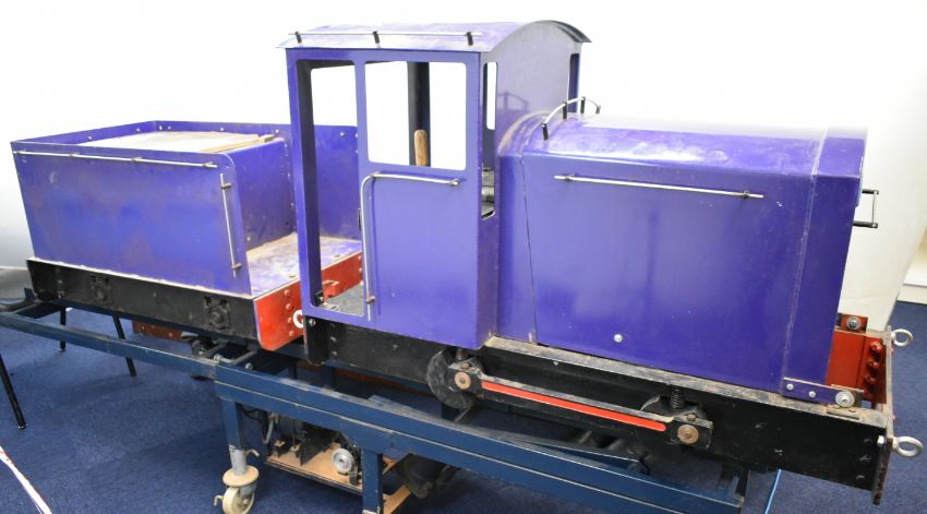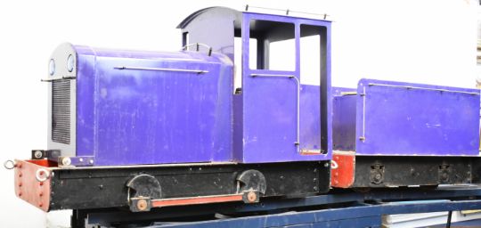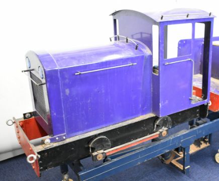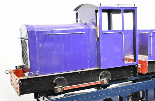 7¼ inch gauge petrol hydraulic 0-4-0 tender locomotive with 5.5hp Tecumseh four stroke OHV electric start petrol engine with sprung axleboxes and outside cranks and fluted connecting rods, overall length of locomotive and ride in tender 234cm