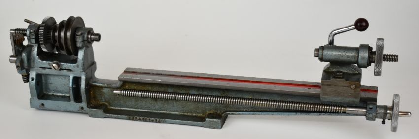 Flexispeed Meteor watchmaker's or model engineering lathe, with serial numbered to the hand finished bed 1475, length 59cm, the vendor had planned to fit a Cowell saddle and top slide in order to use this lathe
