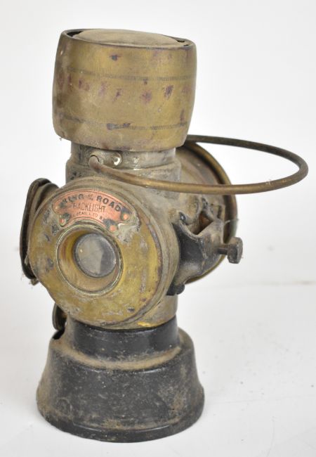 Lucas King of the Road Backlight paraffin veteran or Edwardian car lamp, together with a Lucas Captain bicycle lamp, height of taller 25cm