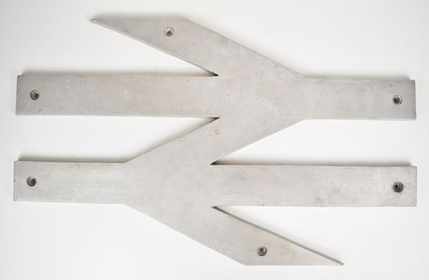 Reproduction cast aluminium British Railways Intercity double arrow, overall length 69.5cm