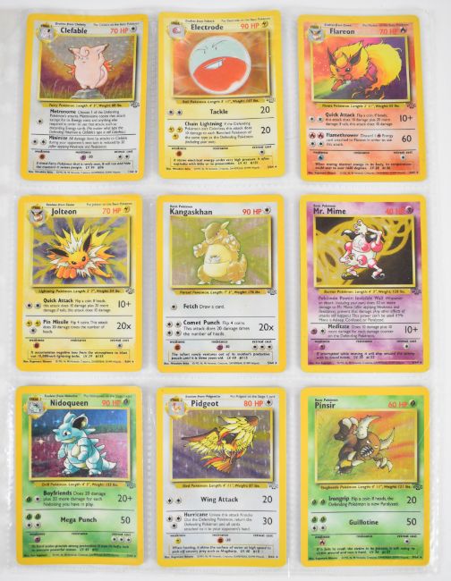 Pokémon TCG - Complete Jungle set by Wizards of the Coast, 1999, comprising all 64 cards including 16 holos.