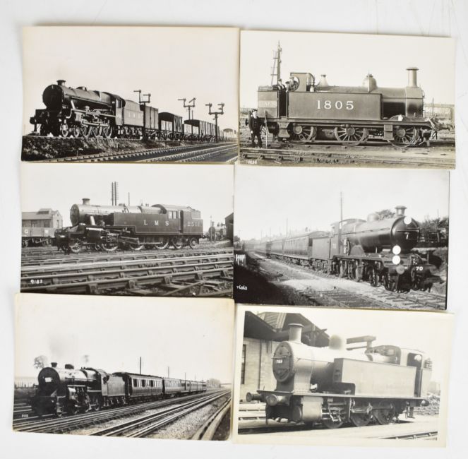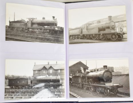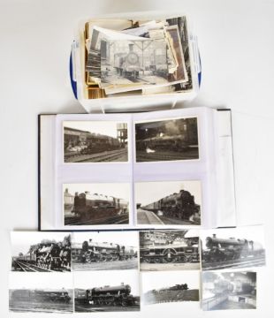 Approximately 800 LMS, British Railways and similar photographs and postcards to include LNWR, housed in one box and an album