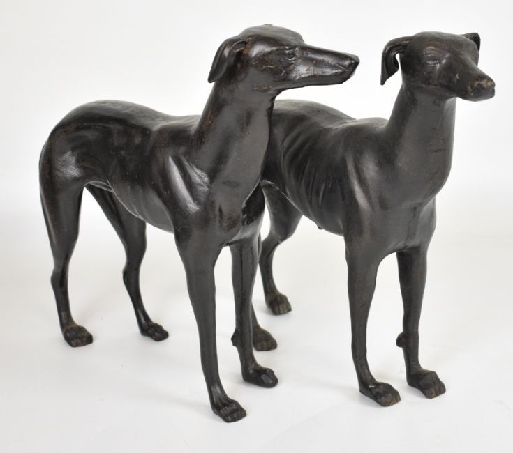 Pair of cast metal dogs / greyhounds, H29cm
