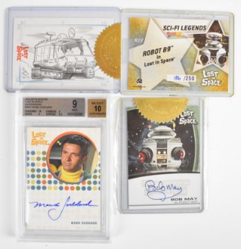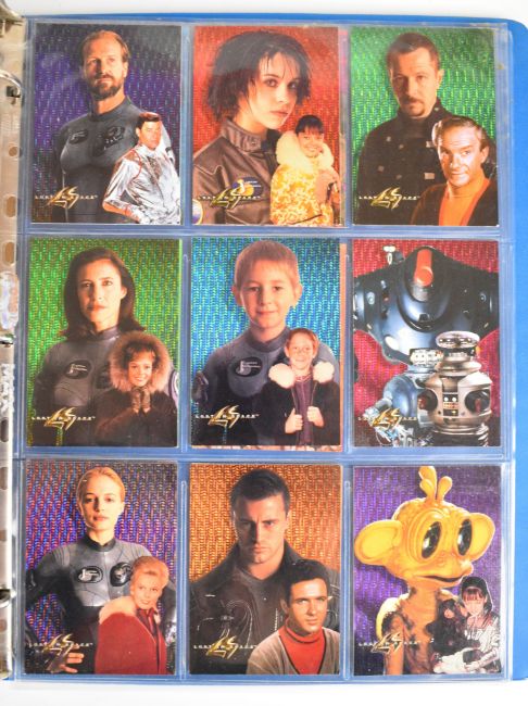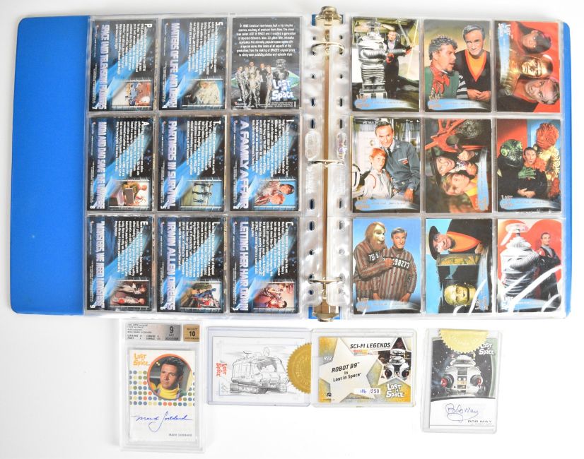 Lost in Space trading cards by Inkworks and Rittenhouse Archives to include a complete base set, foils, limited edition chase cards and a Beckett graded Mark Goddard signature card, the majority housed in an official folder, total card count 141.