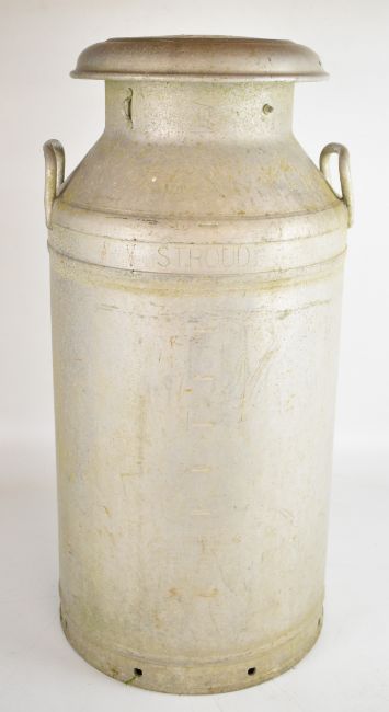 Stroud Creamery Ltd vintage aluminium milk churn, both base and lid being named and the lid dated 1963, of local Gloucestershire interest, height 72cm
