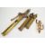 Three various whistles and an oil cup to suit live steam locomotive, traction engine or similar, the largest whistle having valve attached, overall height 42cm