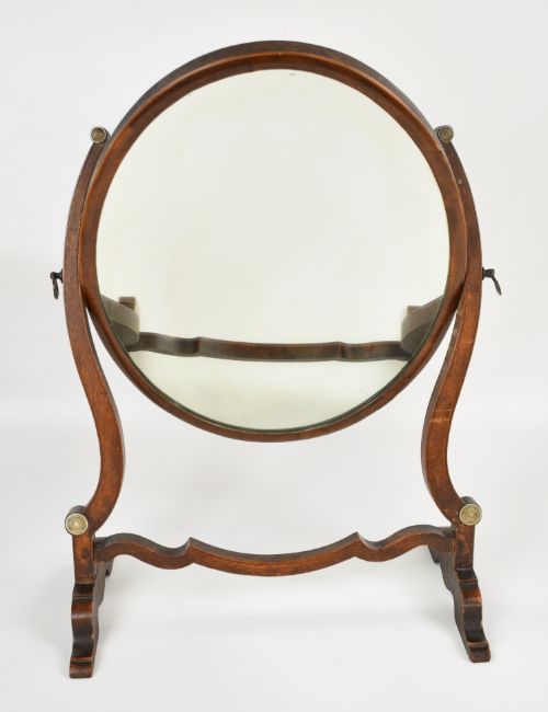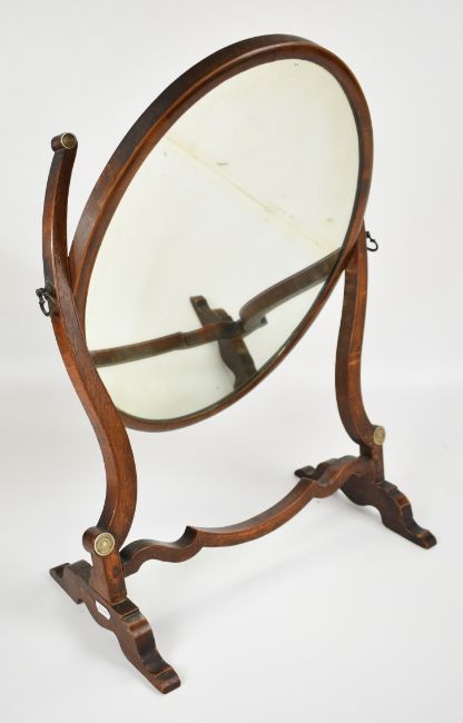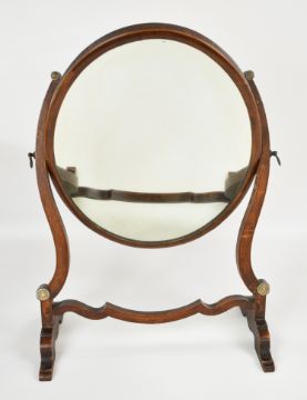 Regency mahogany dressing table mirror with turned bone inlay, H57cm