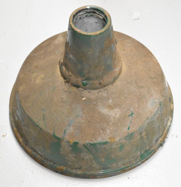 Two green enamel industrial style lamp shades, diameter 44cm