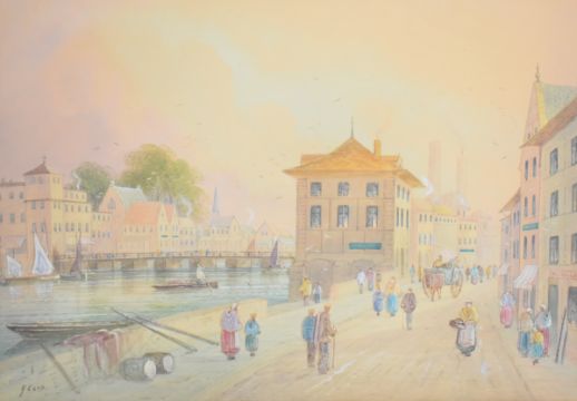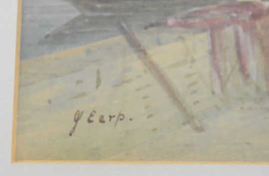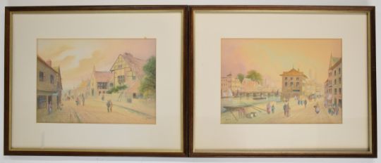 Pair of J Earp watercolours 'The Quay, Bern' Switzerland and 'Ditchling, Sussex', 19thC street scenes, each 25 x 35cm