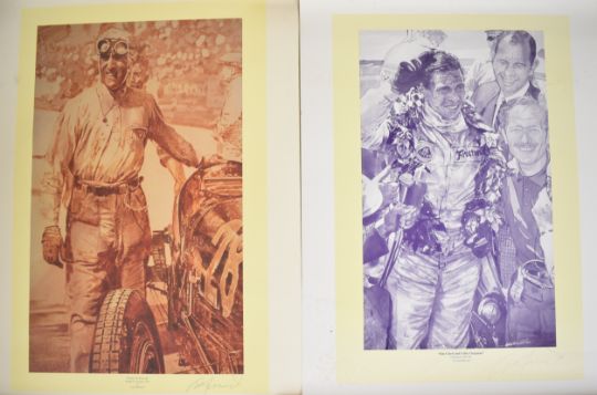 Brooklands, The Complete Motor Racing History by William Boddy 2001 limited to 2000 copies. The Story of Brooklands (volume 2) 1949. Motor Racing by S.C.H. Davis 1932. Motor Racing and Record Breaking by Eyston and Lyndon 1935. Charles Jarrott Ten Years of Motors and Motor Racing 1896-1906. Donnington Park race programmes for 1934 and 1937 together with other 1960s/70s programmes including Brands Hatch, Silverstone, Oulton Park, Snetterton and Prescott Hill Climb. The Chain-Drive Frazer Nash by David Thurlby 1967. History of The Motor Car 1970 numbers 1-24 complete. The Veteran and Vintage Magazine 1959-72 (approximately 100 issues), Sotheby Veteran and Vintage Car auction catalogues 1965-68 etc, together with two signed racing prints by Craig Warwick ‘Tazio Nuvolari and his Bugatti 59 at Monaco 1934’ and ‘Jim Clark and Colin Chapman at the Indianapolis 500 in 1965’, (largest) 70 x 50cm