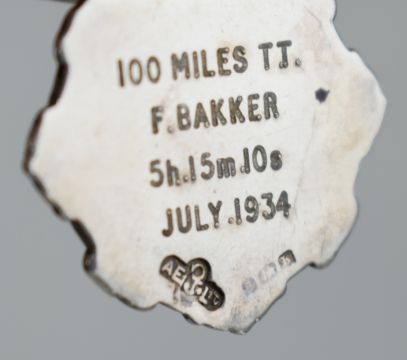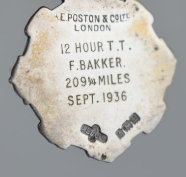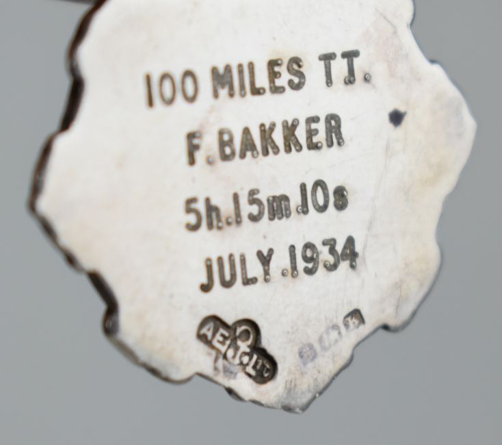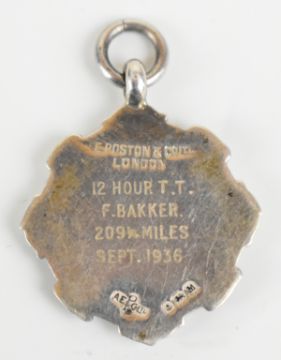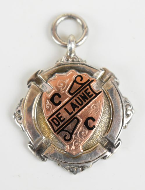 Two De Laune Cycling Club, London hallmarked silver medals with gold and enamel shields to front, one F.Bakker July 1934 100 mile TT, the other also to Bakker for the 12 hour TT September 1936, weight of both 17g