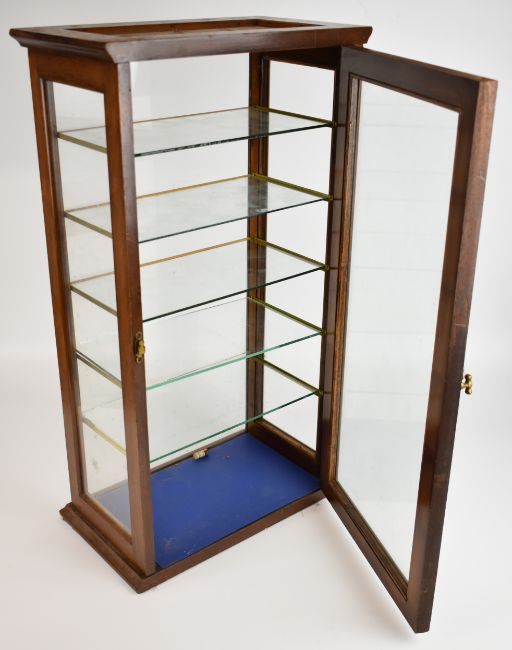 19th/20thC glazed mahogany counter top shop display / haberdashery cabinet with five glass shelves, W36 x D22 x H67.5cm