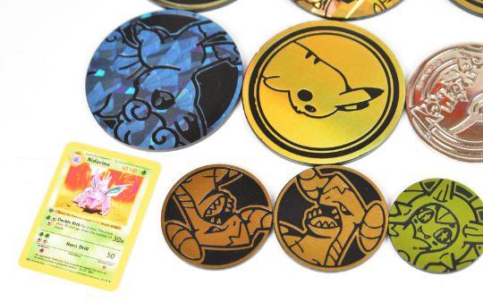 Pokémon TCG - A collection of over one hundred Pokémon coins comprising plastic and metal examples.