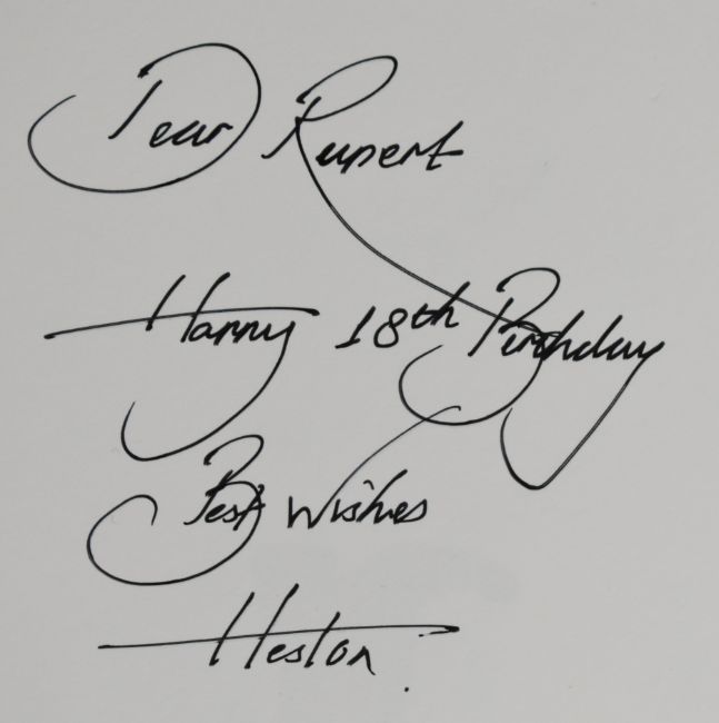 [Signed & Inscribed] The Big Fat Duck Cookbook by Heston Blumenthal, published Bloomsbury 2008 first edition, fully illustrated cloth bound folio hardback in slipcase signed in ink by Heston on title page and with an additional signed personal inscription 'Dear Rupert Happy 18th Birthday Best Wishes (signed) Heston' folio