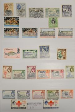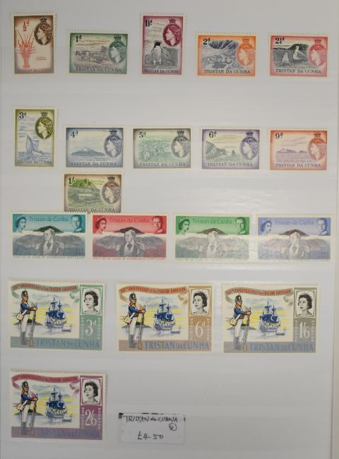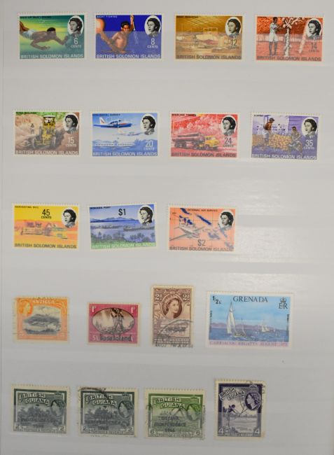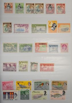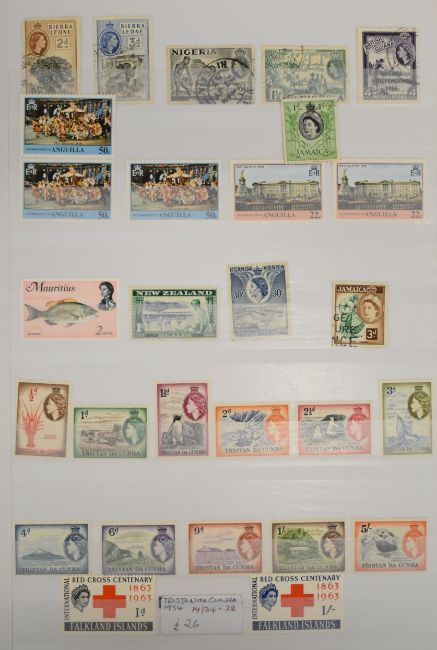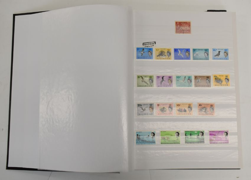 Stockbook with Queen Elizabeth II Commonwealth stamps together with various foreign stamps including Ascension 1963 Birds set MM, British Solomon Islands 1968 Definitive set UM, Tristan Da Cunha 1954 to 5/-, Basutoland 1954 to 2/6, St Helena 1961 to £1, Hong Kong 1962 $20 UM together with France Empire issues, early Spain to 1 Pesata, Cuba, 1936 France Air Mail to 3F50, South West Africa War Issue to 1/-