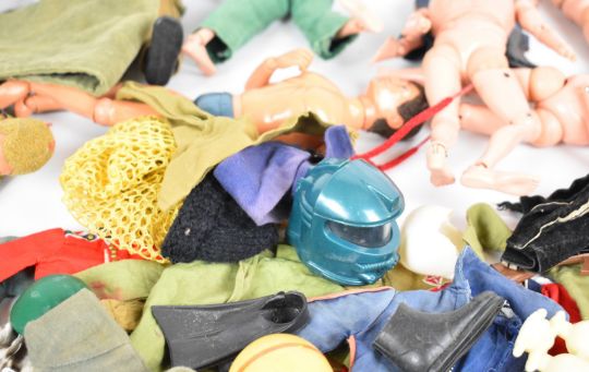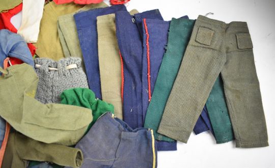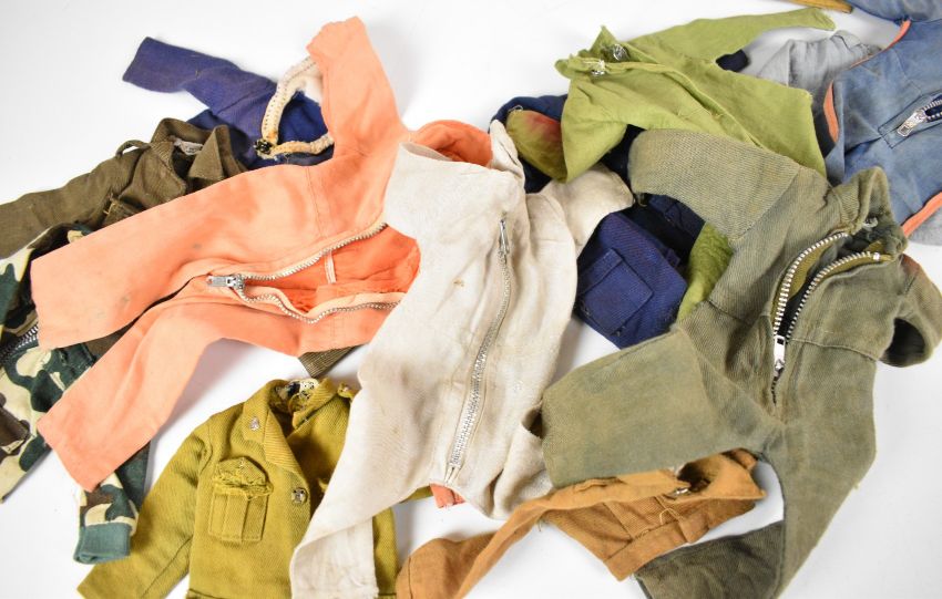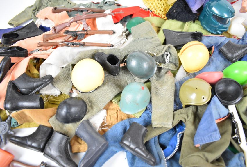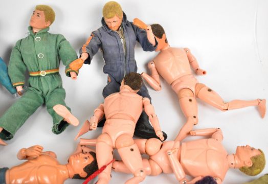 Ten vintage Palitoy Action Man figures, the majority flock haired examples and some with eagle eyes, together with a collection of clothing and accessories.