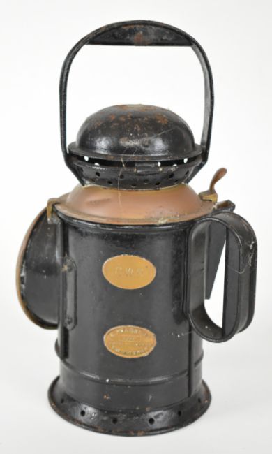 G.Polkey Ltd GWR tri colour railway hand lamp, Lucas Aceta bicycle lamp, vintage fishing or similar float and a brass and copper fire nozzle