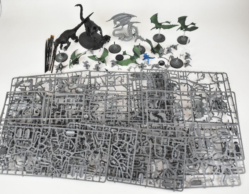 Games Workshop Warhammer plastic miniatures, a quantity part assembled, others on the sprue.