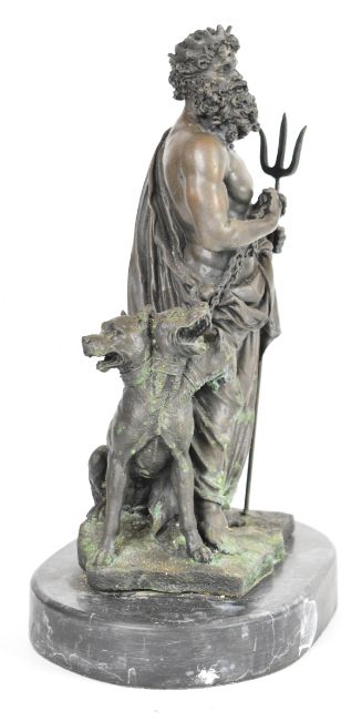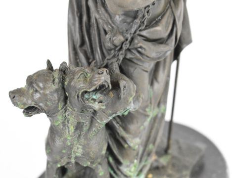 Bronze figure of Hades and Cerberus, signed to base, H30cm including plinth