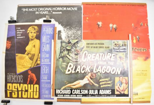Four Horror / Sci-Fi film posters comprising Eraserhead, Invasion of the Body Snatchers, Creature From the Black Lagoon and Psycho, 1980's printing largest 91 x 61cm