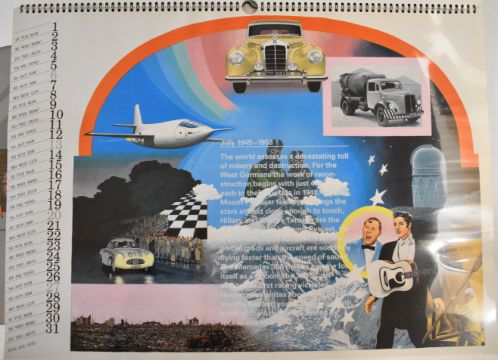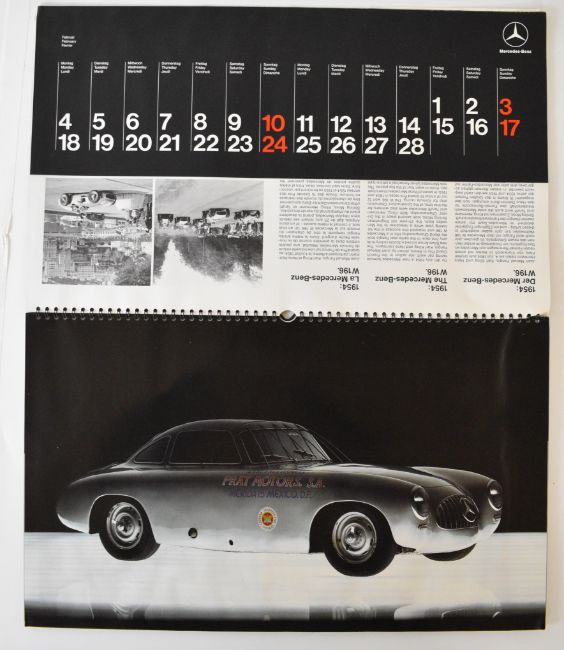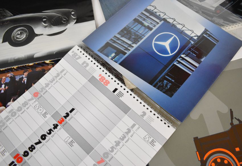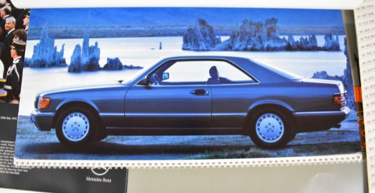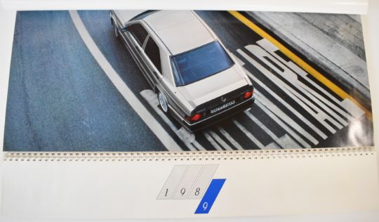 Seven Mercedes Benz calendars for years 1985, 1986, 1988 (and variant), 1989, 1990 and 1991, all but one with card mailers, largest 47 x 65cm