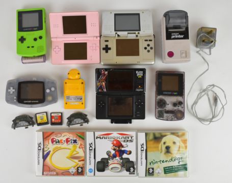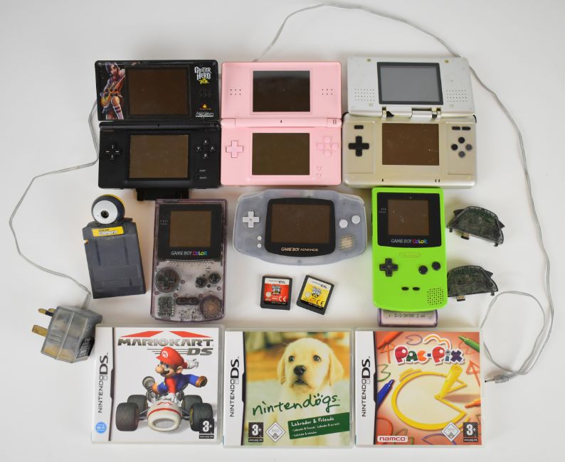 Six Nintendo handheld games consoles to include Game Boy Color, Game Boy Advance, DS and DS Lite, together with games and accessories.