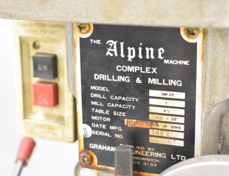 Alpine DM 25 milling machine to suit model engineering or similar, together with a rotary table, further similar attachment, vice, PosiLock chuck and angle plate, overall height 101cm