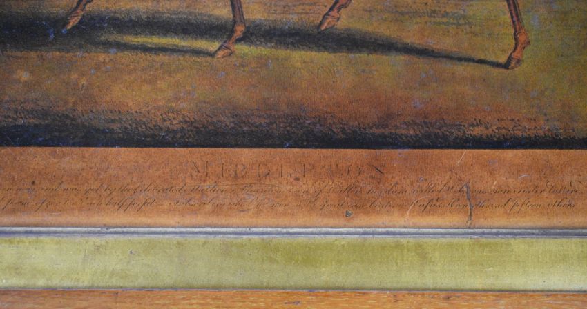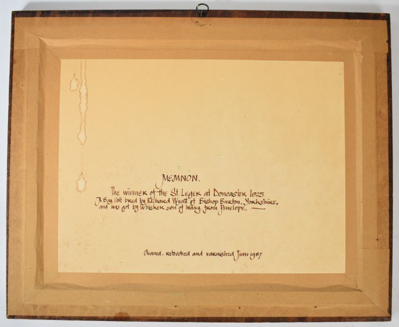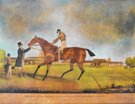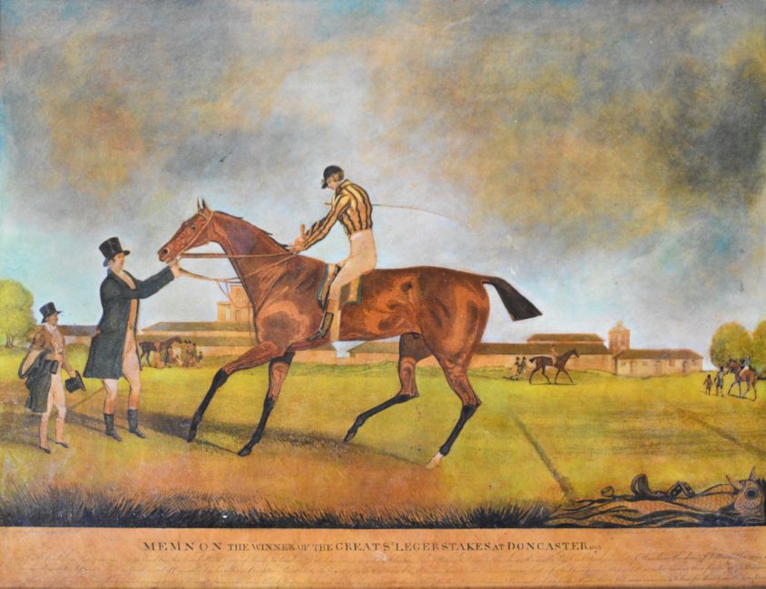 Pair of 19th century horse racing prints, one titled ‘Memnon The Winner of The Great St. Leger Stakes at Doncaster 1825’, the other titled ‘Middleton’, 35 x 46cm, in matching frames (2)