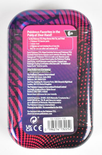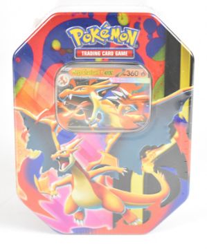 Pokémon TCG - Six collector tins containing a quantity of booster packs from Scarlet & Violet series, to include Mega Charizard, Slashing legends and Mega Heroes all factory sealed.