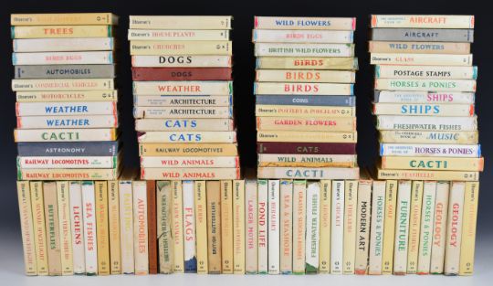 Approximately ninety Observer books published by Frederick Warne on various subjects to include Farm Animals 1976, Glass 1976, Unmanned Spaceflight, Mushrooms, Tourist Atlas of Great Britain, Butterflies, House Plants, Pottery & Porcelain, Herbs 1980, Coins 1977, Lichens, Awards & Medals, Motorcycles, Seashells 1977, Wild Flowers 1944, Dogs, Automobiles, Ships, Weather, Cats, Freshwater Fishes, Golf, Astronomy, Railway Locomotives, Football, London, Cricket, Pond Life etc