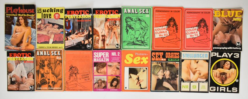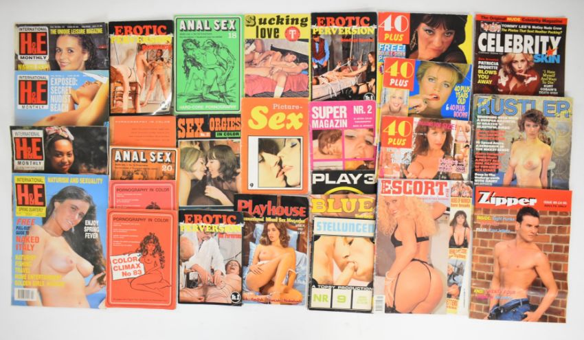 [Adult Entertainment] Collection of glamour and erotic magazines to include Blue pornography with fantasy, Color Climax, Celebrity Skin, Playhouse, Play 3 Girls, Erotic Perversion, Stellungen, 40 Plus, Escort, Sucking Love, Zipper, International H & E etc, many small format (27)