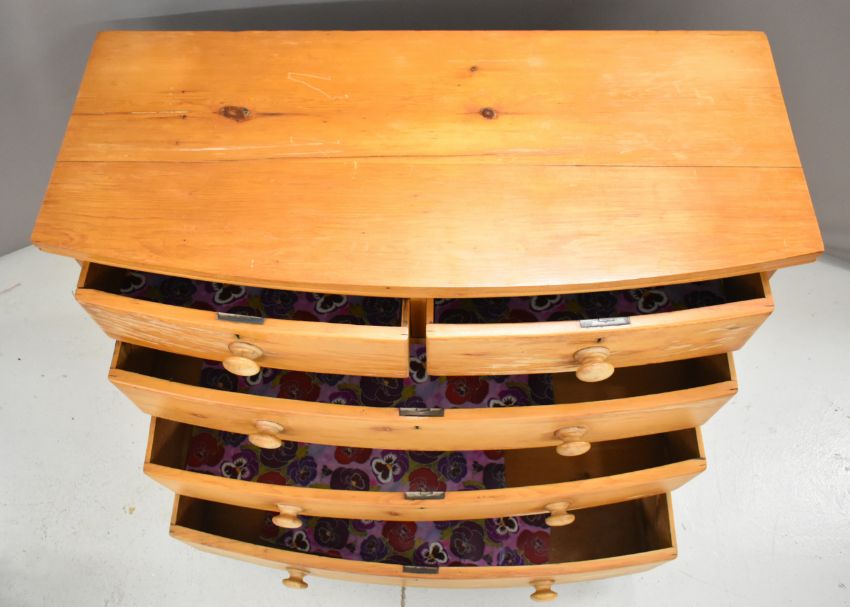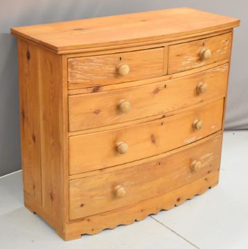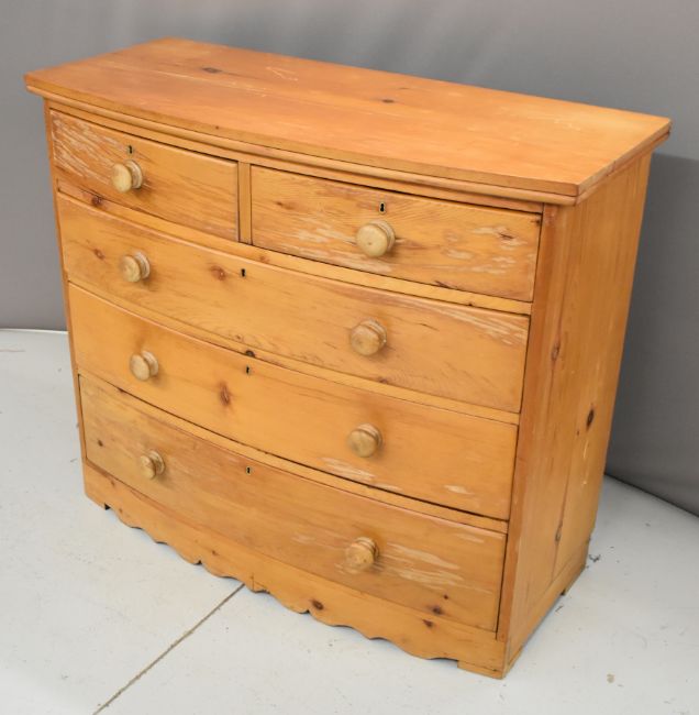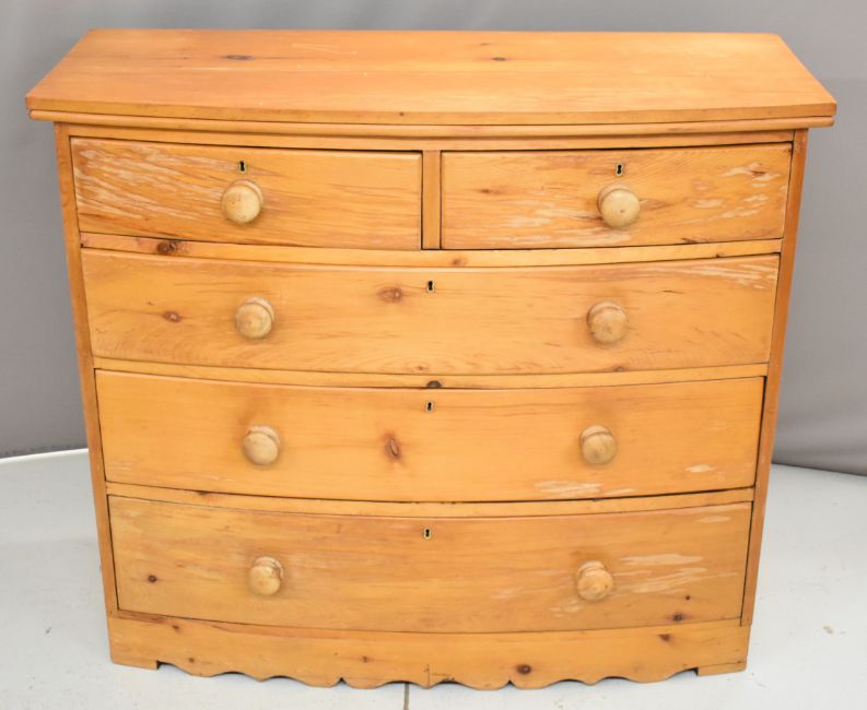 19thC pine bow fronted chest of two over three graduated drawers, W113 x D49 x H97cm