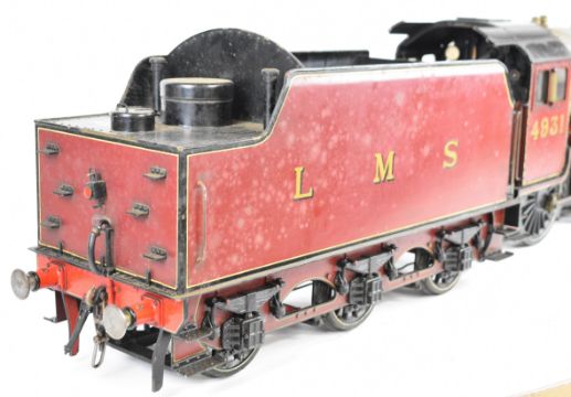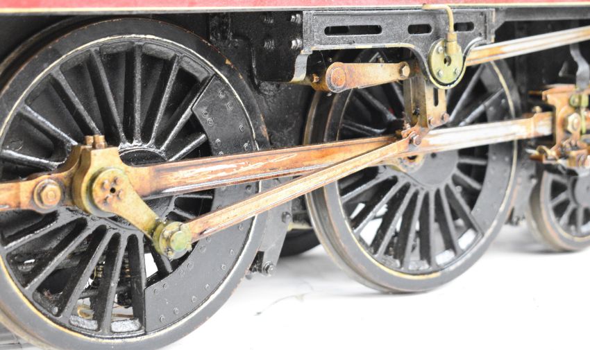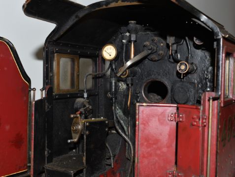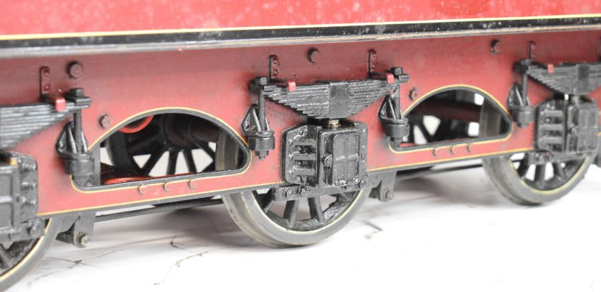 5 inch gauge LMS Black 5 live steam 4-6-0 tender locomotive, the copper boiler having 0-150 psi Bond's pressure gauge, water level gauge glass and twin safety valves, the boiler fed by an axle driven feed pump and hand pump to the tender. The twin outside cylinder having Walschaerts valve gear operated from a screw reverser in the cab, the cylinders having cab operated drain cocks and being lubricated by a ratchet lubricator under the front. The driving wheels having steam brakes, the tender with working handbrake. All axles, buffers and drawhooks being sprung. Overall length 172cm
