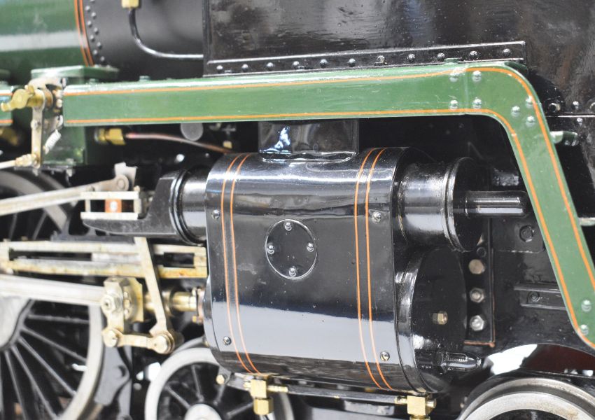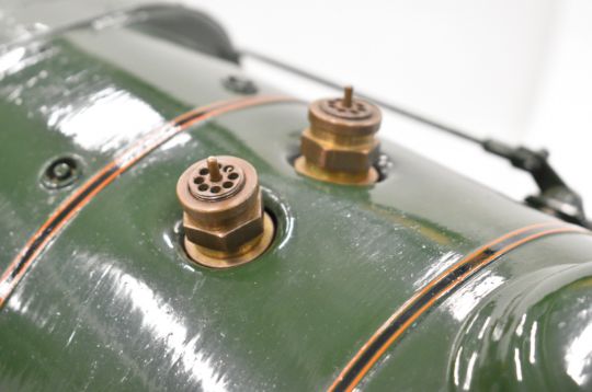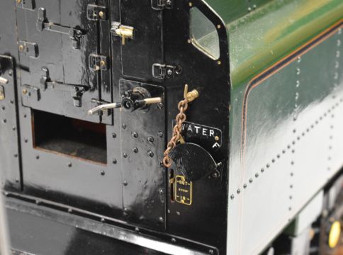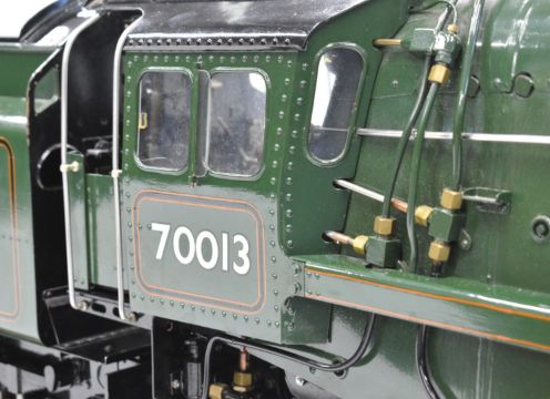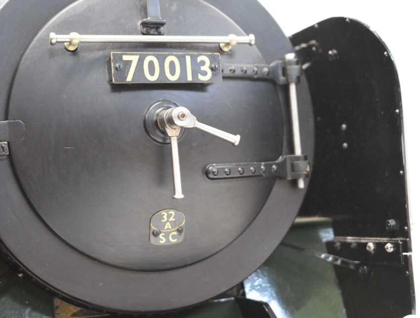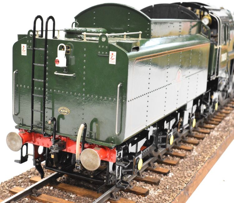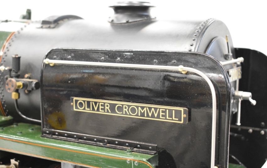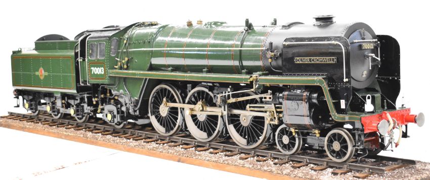 Exhibition standard 5 inch gauge BR Britannia live steam 4-6-2 tender locomotive Oliver Cromwell, built by Mr G Wrenn a retired naval engineer, believed to have been based in Fareham, Hampshire over a 7 year period up until 2003 when it was sold to the Coldridge Collection of Ferguson tractors and now bequeathed to the Dunsford Collection of Landrovers, for whom we are offering it for auction. The TIG welded copper boiler having 0-120psi pressure gauge, twin water level gauge glasses and twin safety valves, fed by twin injectors, axle driven feed pump and a double acting hand pump in the tender. The twin outside cylinders having Walschaerts valve gear operated by a wheel in the cab, the cylinders having cab operated drain cocks and lubricated by a pair of ratchet lubricators. The regulator is a pull type example with rods leading to the smokebox. Locomotive, tender, buffers and drawhooks being fully sprung and with brakes on driving wheels and tender. Numerous other details include oil cups on the motion work, various dummy pressure gauges in the cab, sliding firehole doors and a working water scoop to the tender with position indicator and also a water level gauge beside it. The locomotive appears unsteamed from new but oil in the lubricators would suggest it has been run on air. Overall length of locomotive and tender 188cm