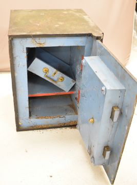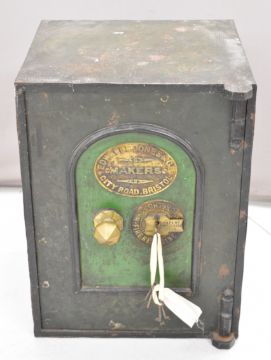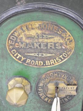 Edward Jones and Co, City Road Bristol vintage iron safe with key, W38 x D38 x H50cm