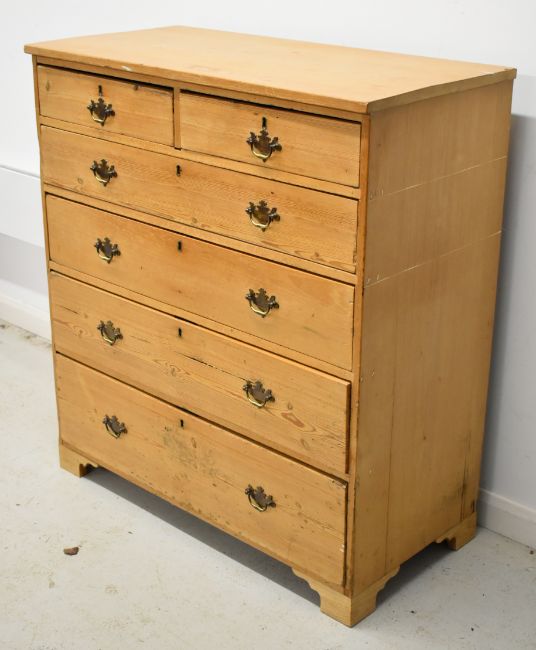 19thC/20thC pine chest of two over four graduated drawers, raised on bracket feet, W103 x D49 x H115cm
