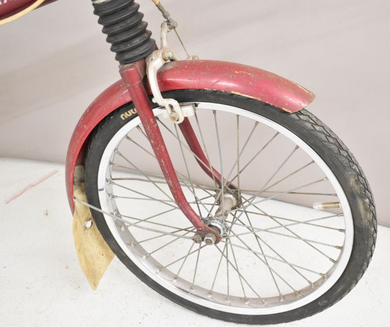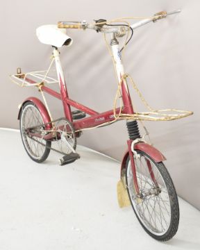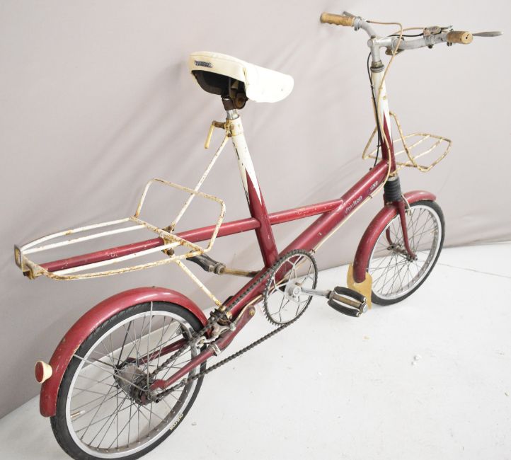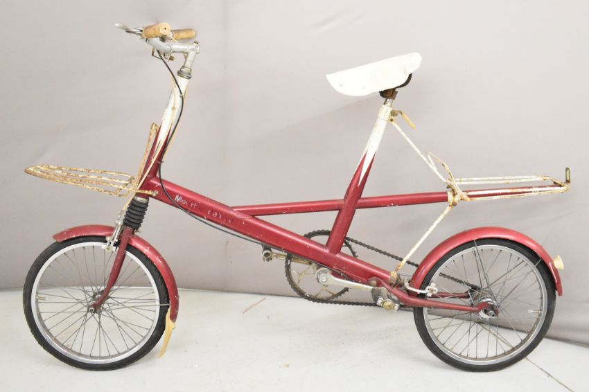 Moulton deluxe 4 speed bicycle with billiard cue style paintwork and front and rear racks, dated to seat tube 64, the vendor has fitted new tyres and a reupholstered seat and a pair of new inner tubes are included