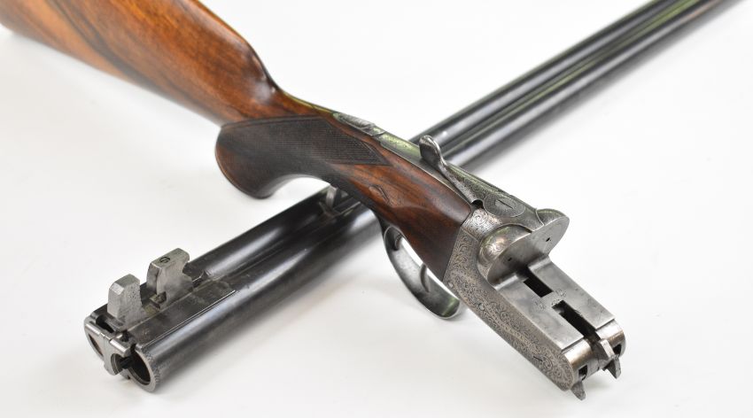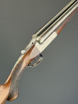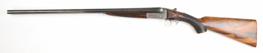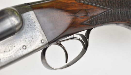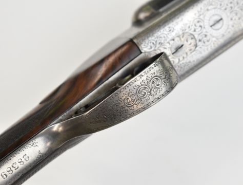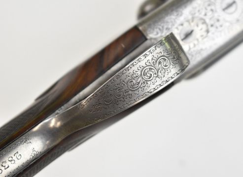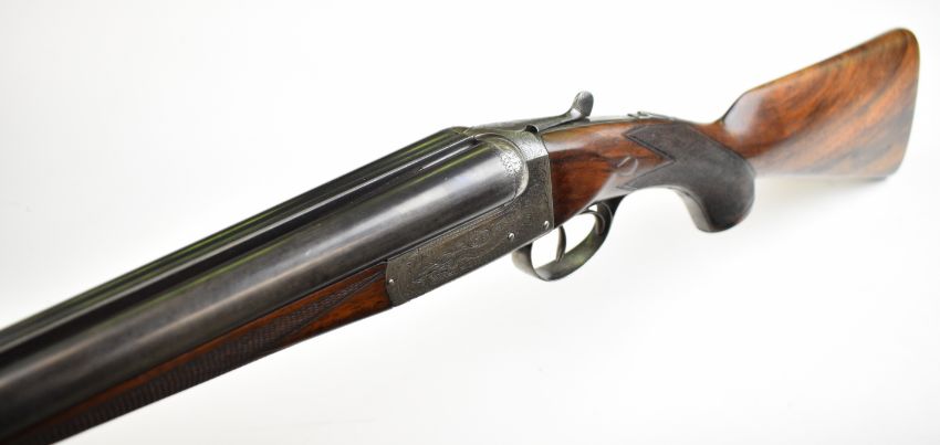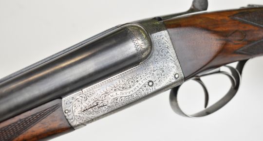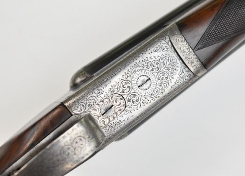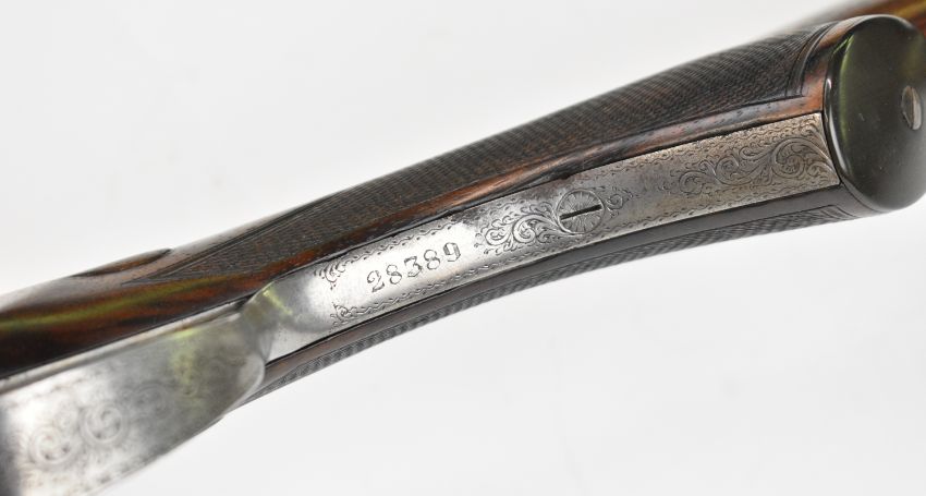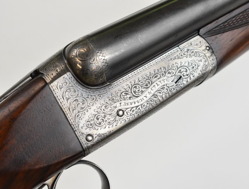W J Jeffery & Co Ltd 20 bore side by side ejector shotgun with named and engraved lock, engraved underside, trigger guard, top plate, thumb lever and fences, chequered semi-pistol grip and forend, carved teardrop to the wrist, vacant cartouche to the underside of the stock, double trigger and named 25 inch barrels choked ¾ and ¼, overall length 106cm, length of pull 37.5cm, serial number 28389. PLEASE NOTE THAT A VALID RELEVANT SHOTGUN CERTIFICATE IS REQUIRED TO VIEW OR PURCHASE THIS LOT AND FOR ALL SHOTGUNS OR RIFLES. PLEASE ENSURE YOU HAVE THE RELEVANT CERTIFICATE BEFORE BIDDING.
