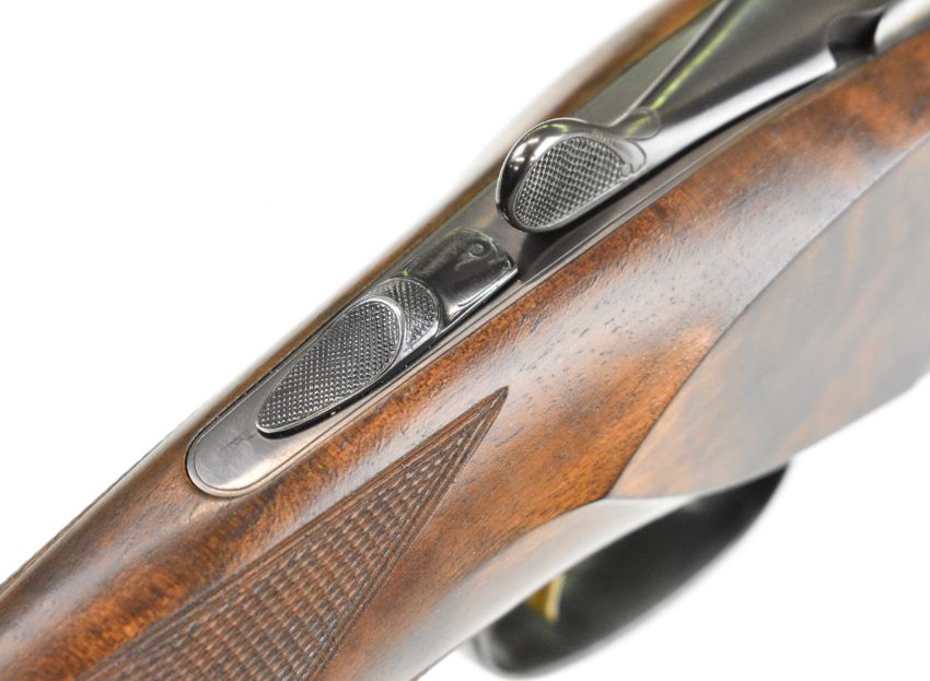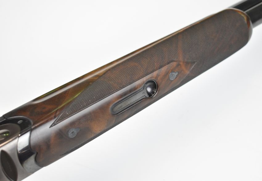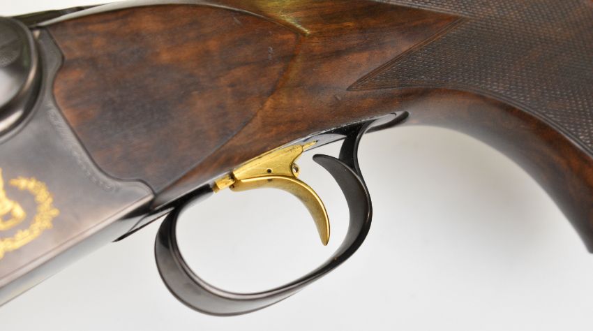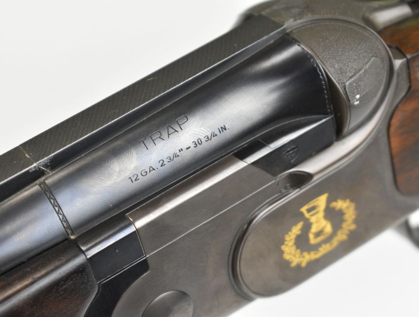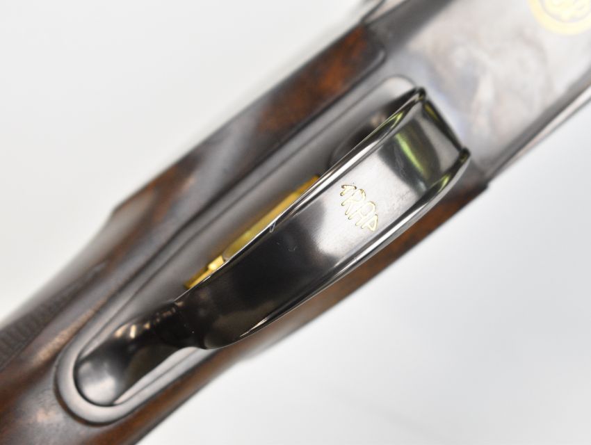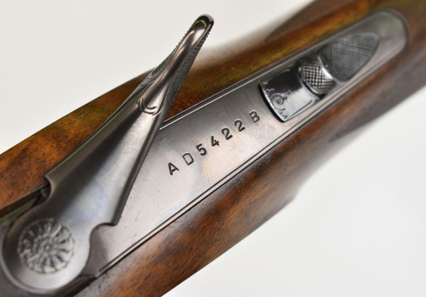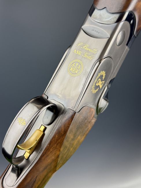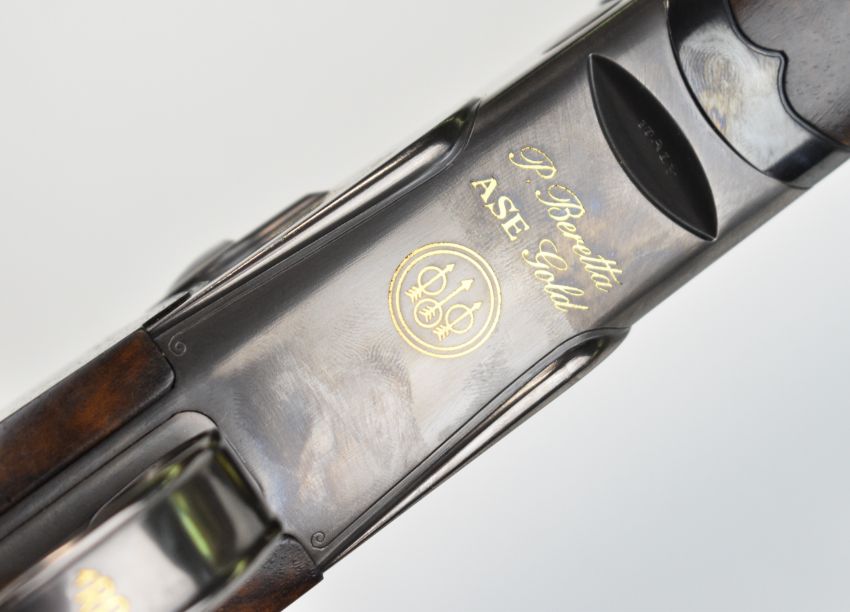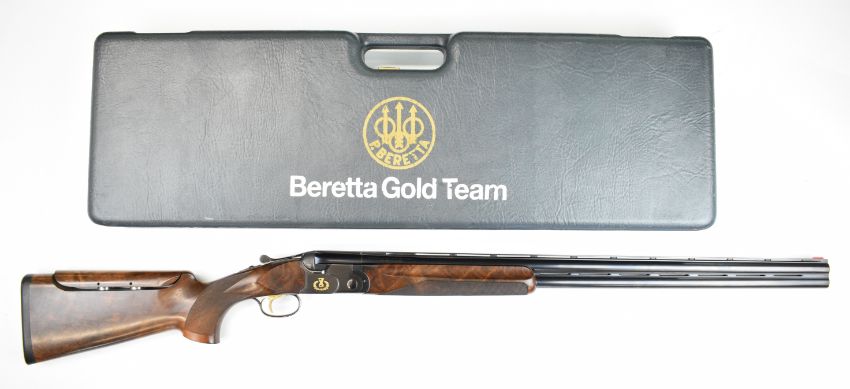 Beretta ASE Gold Trap 12 bore over and under ejector shotgun with gold inlaid naming, chequered semi-pistol grip and forend, adjustable comb, vented top and central ribs, detachable trigger plate, adjustable single trigger and named 30.75 inch barrels choked ¾ and full, overall length 123cm, length of pull 38cm, serial number AD5422B, in original Beretta Gold Team fitted case with dust bags and accessories. PLEASE NOTE THAT A VALID RELEVANT SHOTGUN CERTIFICATE IS REQUIRED TO VIEW OR PURCHASE THIS LOT AND FOR ALL SHOTGUNS OR RIFLES PLEASE ENSURE YOU HAVE THE RELEVANT CERTIFICATE BEFORE BIDDING