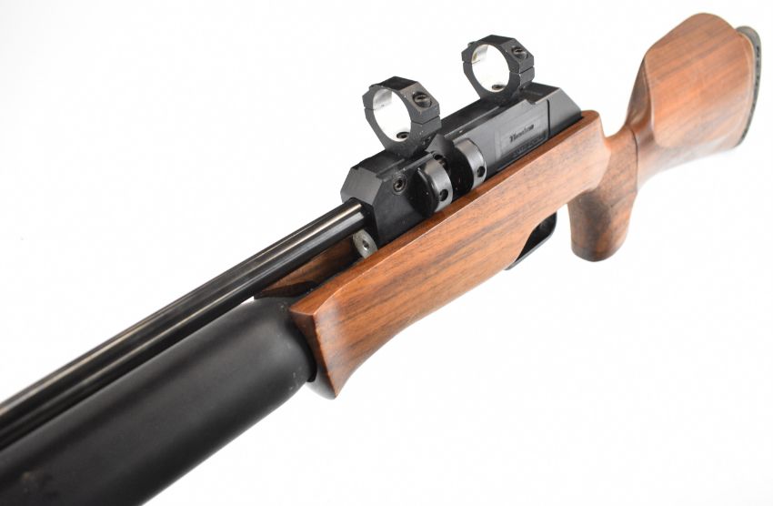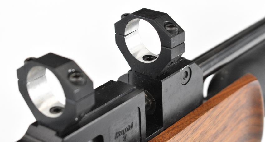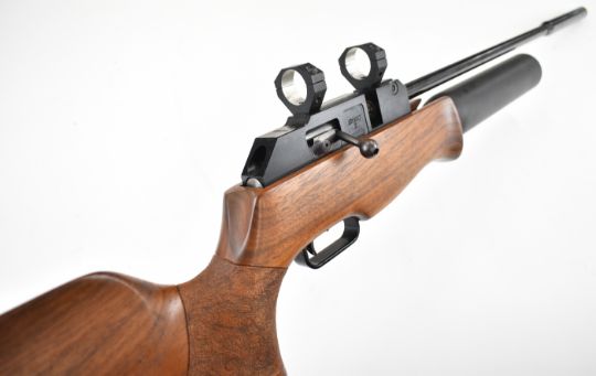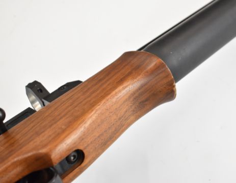 Theoben Rapid 7 .22 PCP FAC air rifle with textured semi-pistol grip, raised cheek piece and scope mounts, serial number 000250. PLEASE NOTE THAT A VALID RELEVANT FIREARMS CERTIFICATE IS REQUIRED TO VIEW OR PURCHASE THIS LOT AND FOR ALL SHOTGUNS OR RIFLES PLEASE ENSURE YOU HAVE THE RELEVANT CERTIFICATE BEFORE BIDDING.