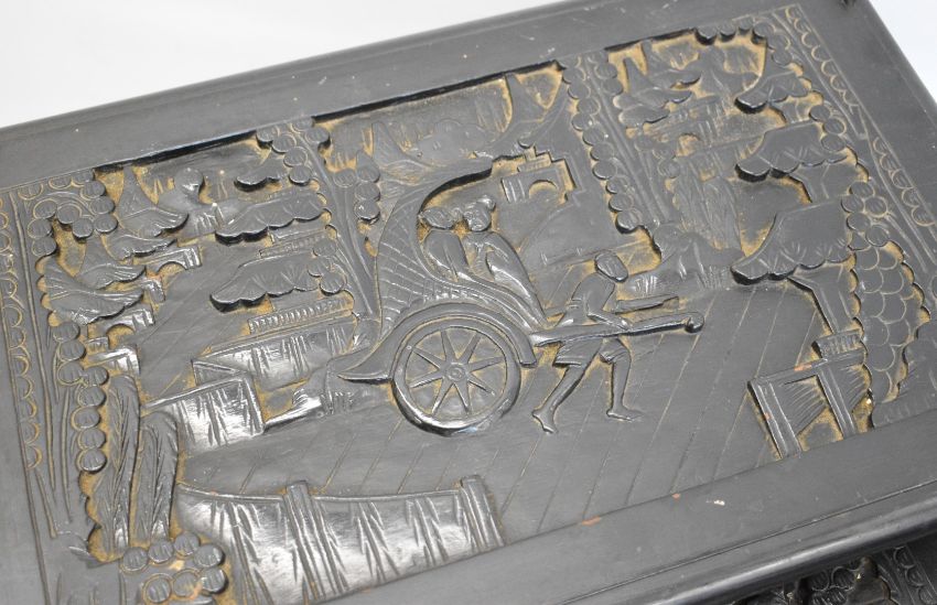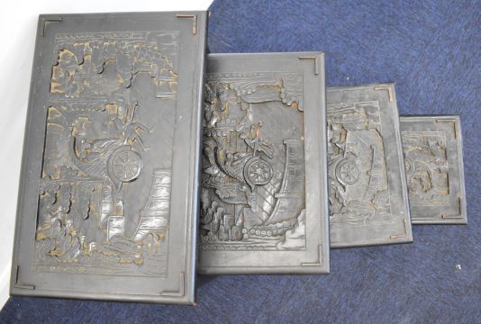Chinese carved wood nest of four tables, largest W55 x D35 x H62cm