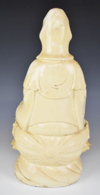 19th/20thC Chinese porcelain blanc de chine figure of Guanyin holding a sceptre, on lotus leaf base, H45cm
